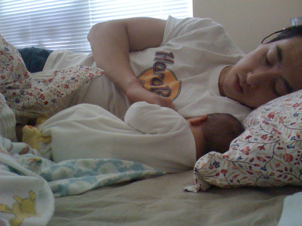 This was the funny thing I saw when I woke up in the morning...baby E looking for his breakfast from the wrong parent...lol